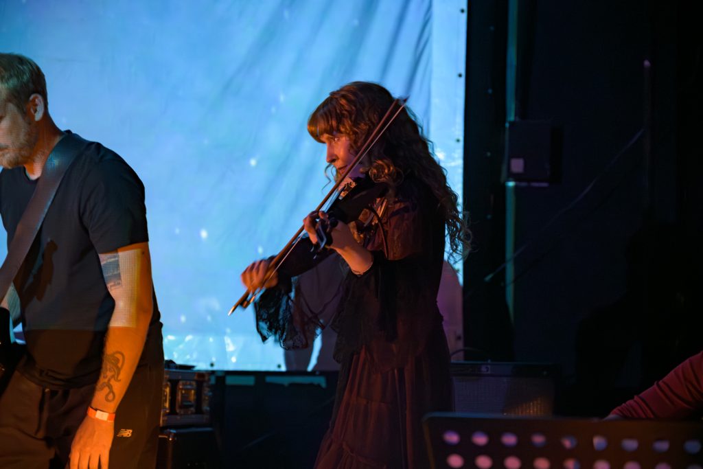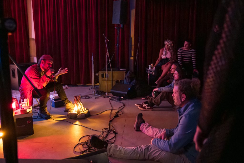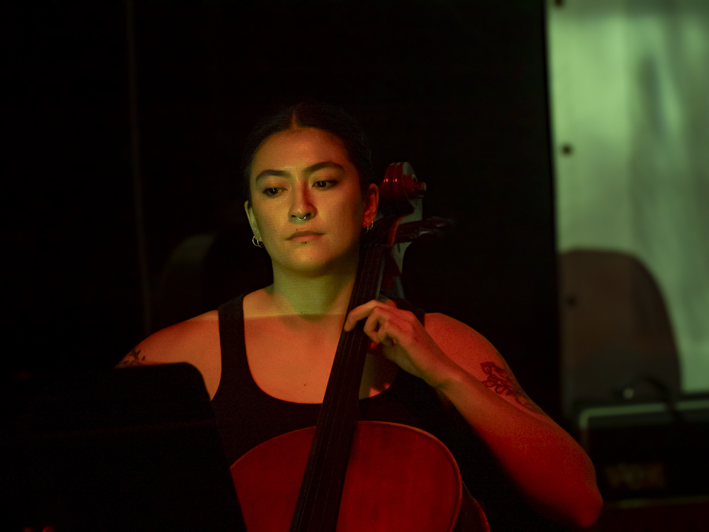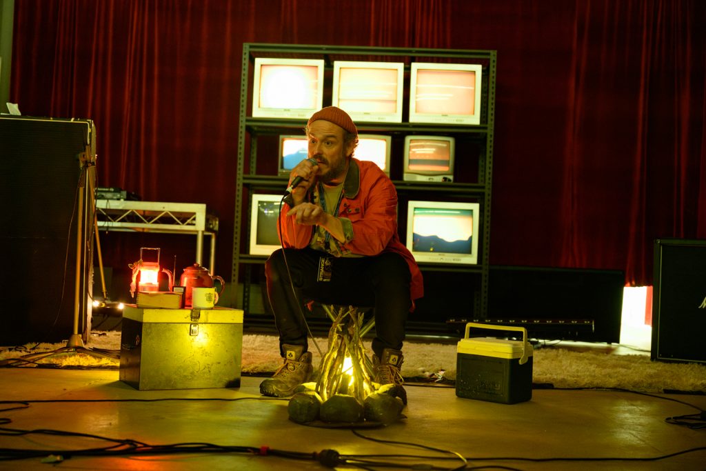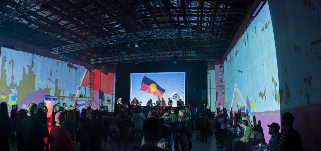 Then the festival’s thesis in long form: Selfless Orchestra launching Terra Nullius as a live cinema-concert. Archival film swept from campfire intimacy to mining machinery, from ethnographic reels to the fallout of Maralinga. Strings whispered, then seethed; a didgeridoo entered mid-set like a hinge. The ensemble’s evocative post-rock rose and broke like weather systems—hope blooming, trains bisecting country, fences torn down—before returning to the crackle of fire. Less a “gig” than a reckoning and motivating call-to-arms, their expression of Terra Nullius was laid across a city shell we’d reanimated for three nights.