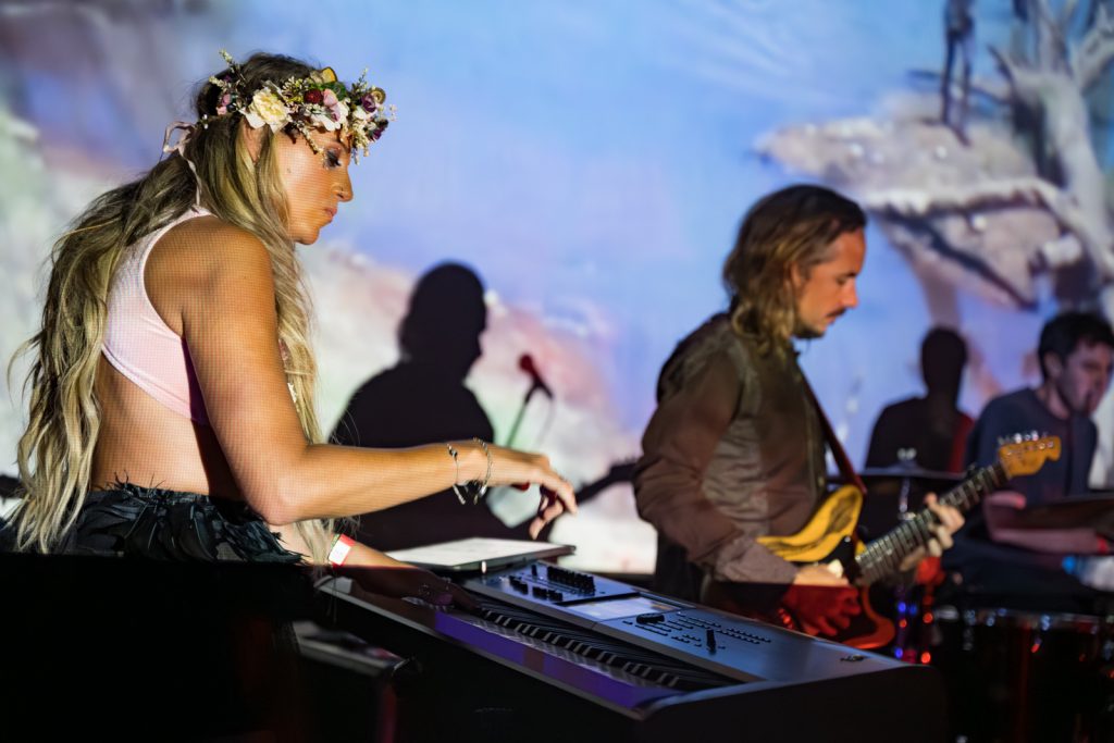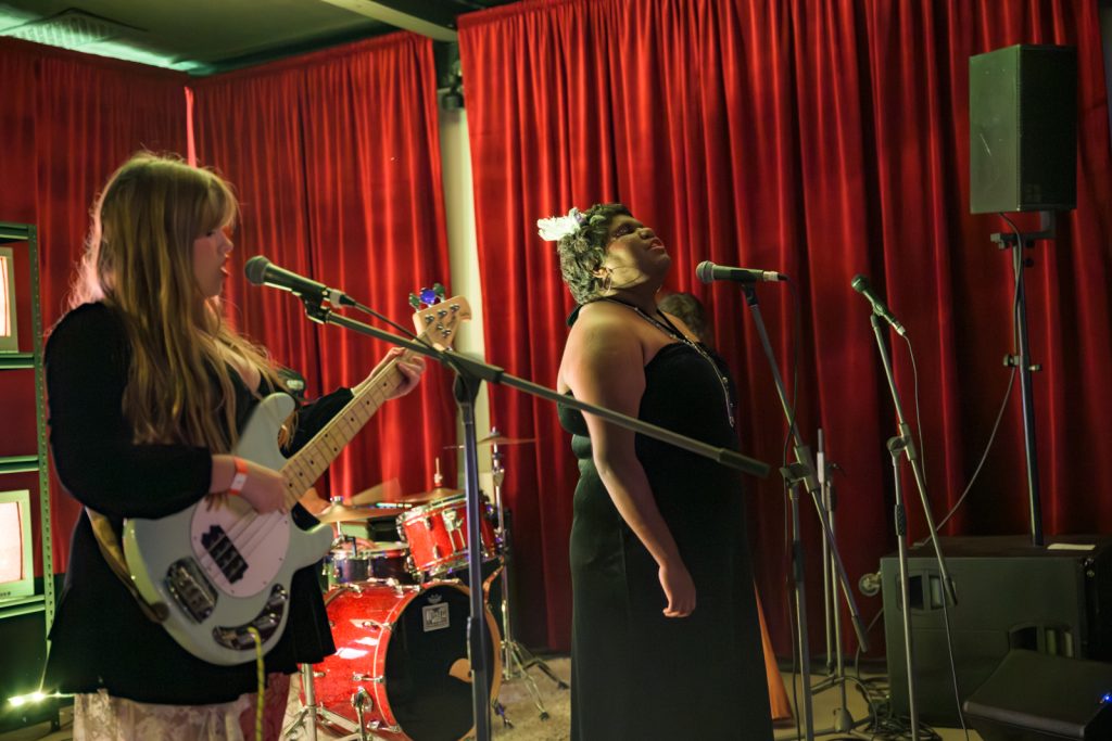 Joni in the Moon then flipped the energy again, casting yet another spell over the room. Beginning a cappella, then with the faintest tinkering keyboard, the duo summoned a dark-soul incantation of kaleidoscopic harmonies and slow-trance projections. Think Nai Palm’s earthiness through a Björk-esque cosmic lens—music for anyone whose ears also bleed to the likes of Florence and the Machine. Fittingly, a Bjork cover (Unravel) was less an homage than a portal; the Liberty’s tall walls became a canvas for their voices to refract, intertwine and swell. The room held its breath.