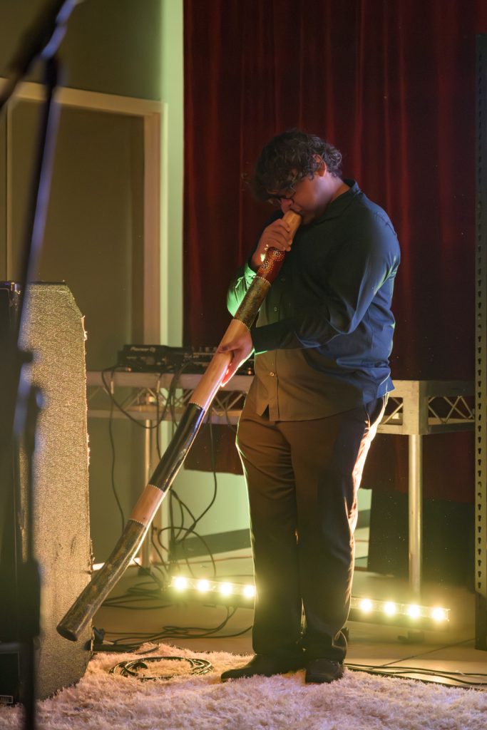 Sadly, Dior Dynasty’s opportunity to bring the ballroom to the Ball wasn’t a go, but Alter Boy reclaimed the catwalk in good stead with their Deaf-led electro-pop. With Auslan as co-star, their taut performance was visual and sensory beyond the usual scope of the genre. The signing balanced perfectly in energy and visual symmetry with the vocals and rest of the band; no element appeared privileged, while attention to frequencies, vibrations and lighting cues allowed their art to be accessed beyond hearing. A bracket performed deliberately in silence proved the point: access and aesthetics are co-authors here.