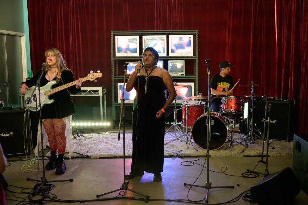 If Night One raised the curtain, Night Two leant into abrasion and nostalgia. Sooks made instant use of the runway format, their hellraiser frontwoman flailing down the catwalk and into the crowd as the band’s propulsive hardcore clipped past. Their skinny ties read like high-society shackles, but nothing about the performance was restrained: ferocity, political bite and local-scene confidence were all front and centre.
