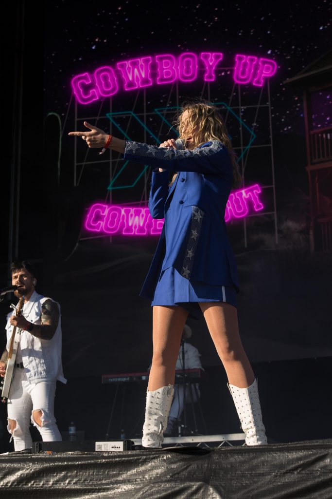 The afternoon turned electric when Kaylee Bell took to the Wildwing Stage. The New Zealand-born country-pop powerhouse performed songs from her new album Cowboy Up, including Ring On It and Songs for Shania, blending infectious energy with relatable storytelling about balancing motherhood, marriage, and career. Backed by a tight band, Bell’s presence was magnetic—an artist fully in command of her craft. Her hits Boots ‘N All and Keith brought huge singalongs, proving she’s one of the genre’s most exciting trans-Tasman exports.