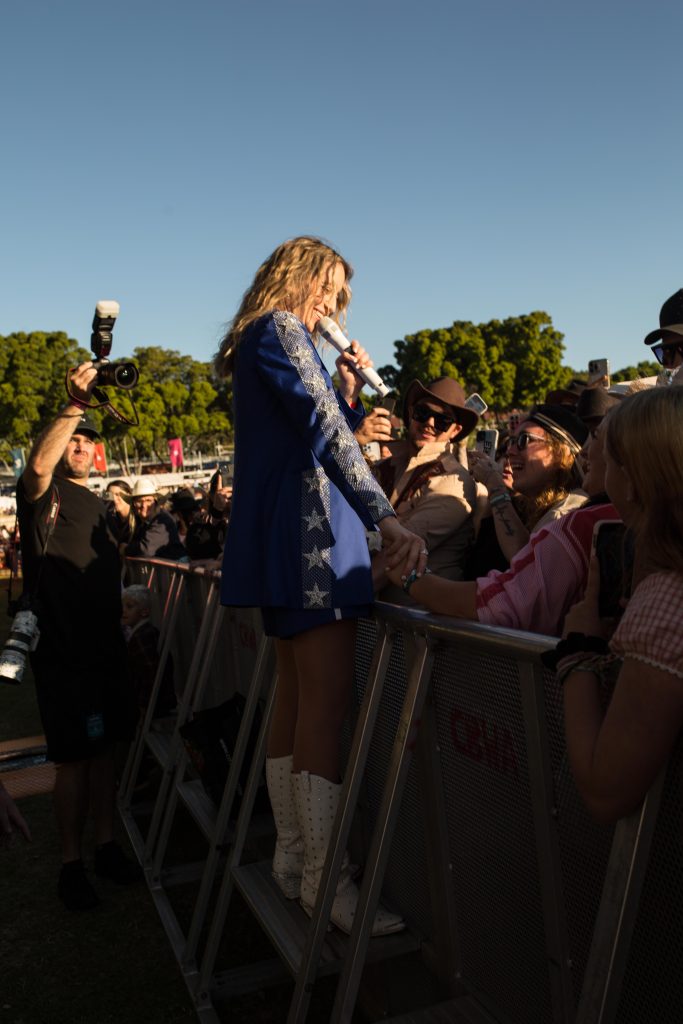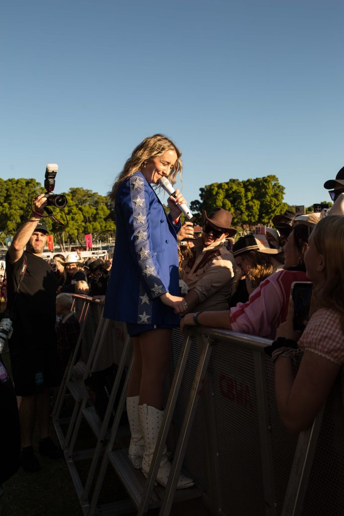 When Johnston returned for his own set, the crowd was primed. Dressed in classic black and denim, he launched into Raised Like That, the anthem that has made him one of Australia’s most streamed country artists. His new song, One More, had the audience breaking into line-dance routines they’d learned earlier in the day, led by choreographer Maddison Glover. Johnston embodies the modern Australian country artist—proud of his roots yet unafraid to blend tradition with fresh energy. His set was a reminder of how homegrown talent can hold its own alongside global names.