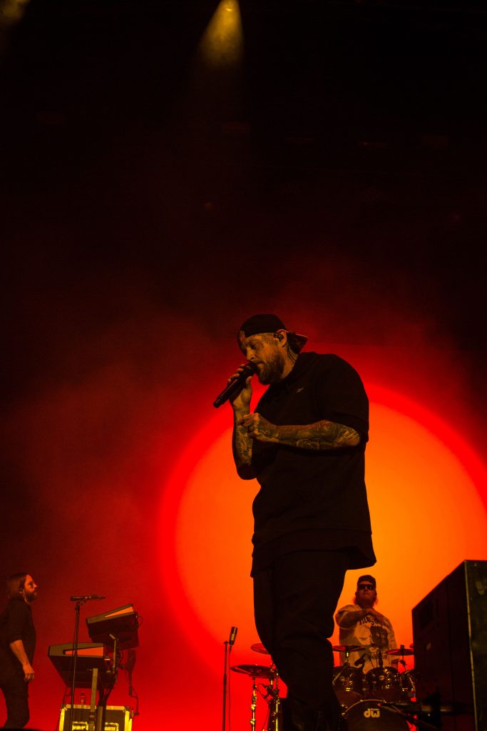 Backed by a powerhouse band, DJ, and dramatic lighting, Jelly Roll opened with Heart of Stone, his gravelly voice filled with emotion. From there, he powered through Lonely Road, Wild Ones, and Bloodlines, his mix of southern soul, rock, and redemption storytelling resonating deeply with the 25,000-strong crowd.