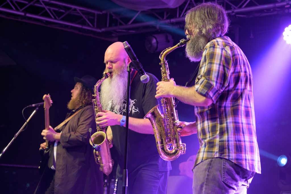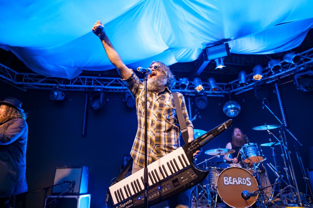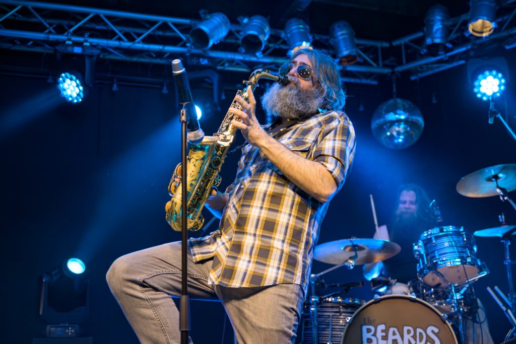 “This next song is about beards!” Beard Accessory Store had rich, dulcet baritone melodies reminiscent of an old sea shanty, mixing with The Beards’ brand of pub humour. Touch Me on the Beard brought the funk and Hall and Oates vibes, complete with a duelling saxophone solo from opener Adam Page and lead beardist Johann Beardraven. A brief lick of George Michael’s Careless Whisper was a subtle nod to the majesty of the instrument.