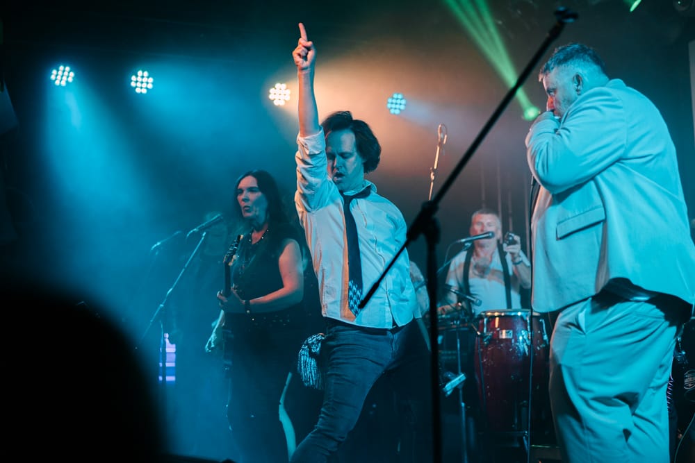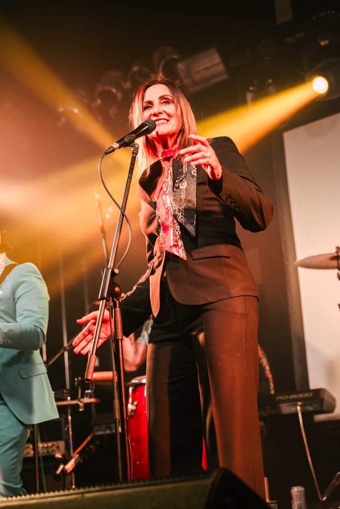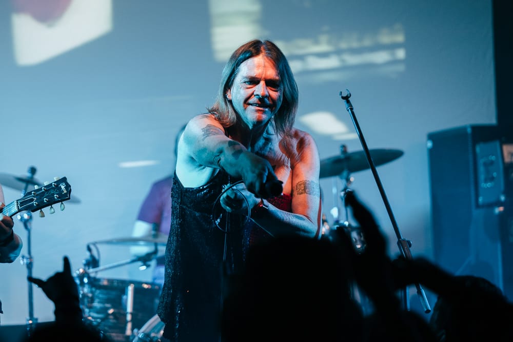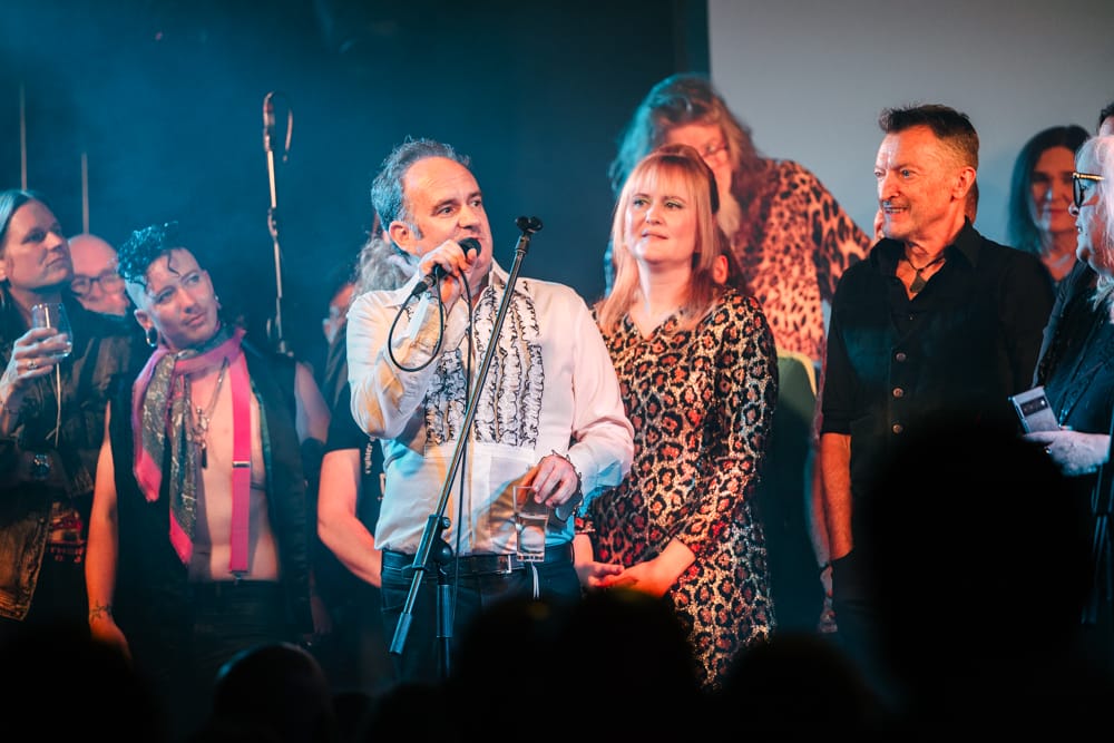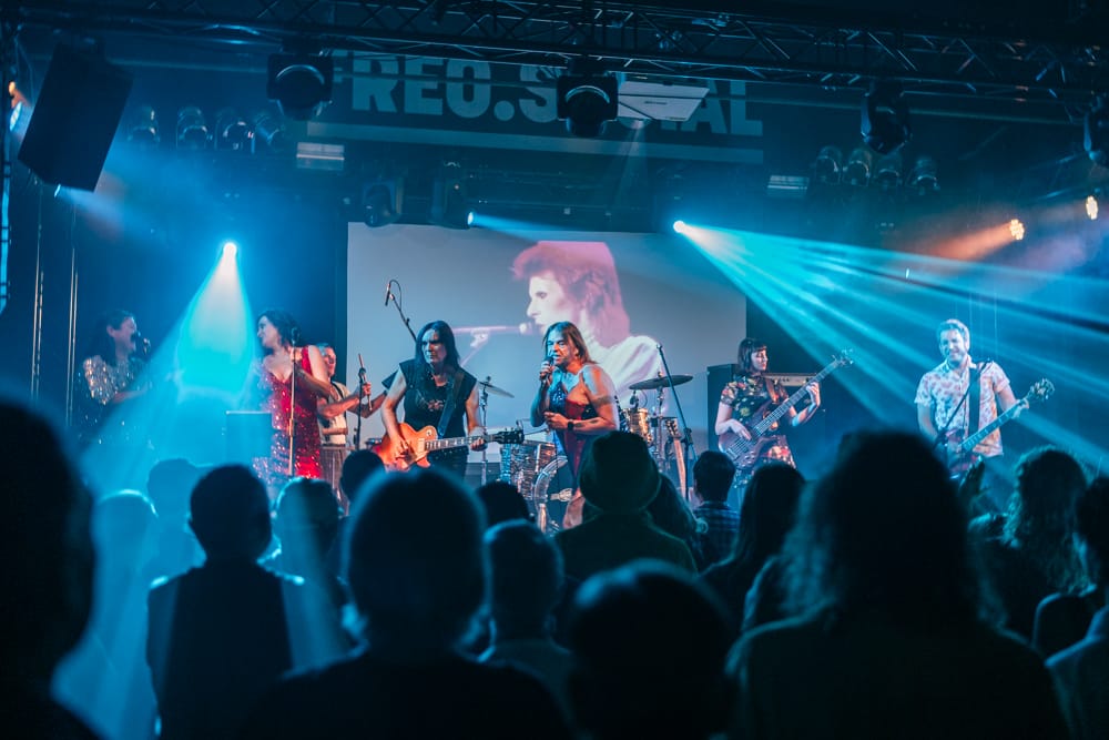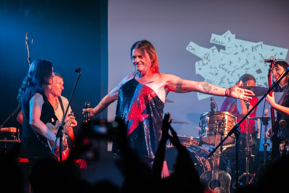 After Jake England embraced Bowie’s cut-up technique of lyrical composition to deconstruct Bowie’s own lyrics to compose and deliver a cut-up poem, Band Four took to the stage with Horn returning to kick off proceedings. In a night overflowing with musical highlights, one of the most poignant and impactful was undoubtedly her presentation of Lazarus. A song from Bowie’s twenty-sixth and final studio album, Blackstar, Lazarus is a self-penned eulogy reflecting on mortality, fame, and transcendence, with Horn’s inflicting delivery benevolently reinforced by her attire of a black dress and veil. Goerke and Gordon returned for Diamond Dogs and Boys Keep Swinging and were followed by Sami Electric Blue Bird, who presented a delightful rendition of Rebel Rebel.