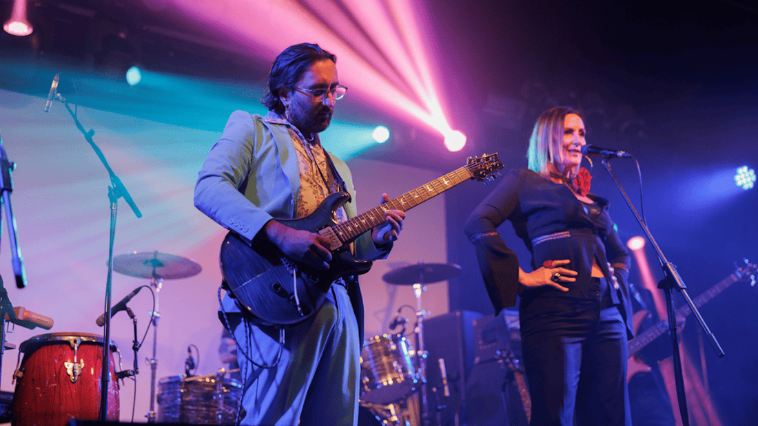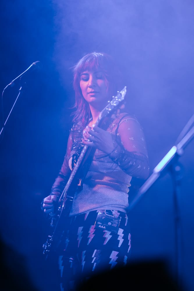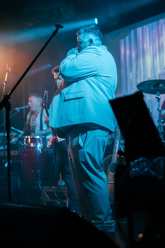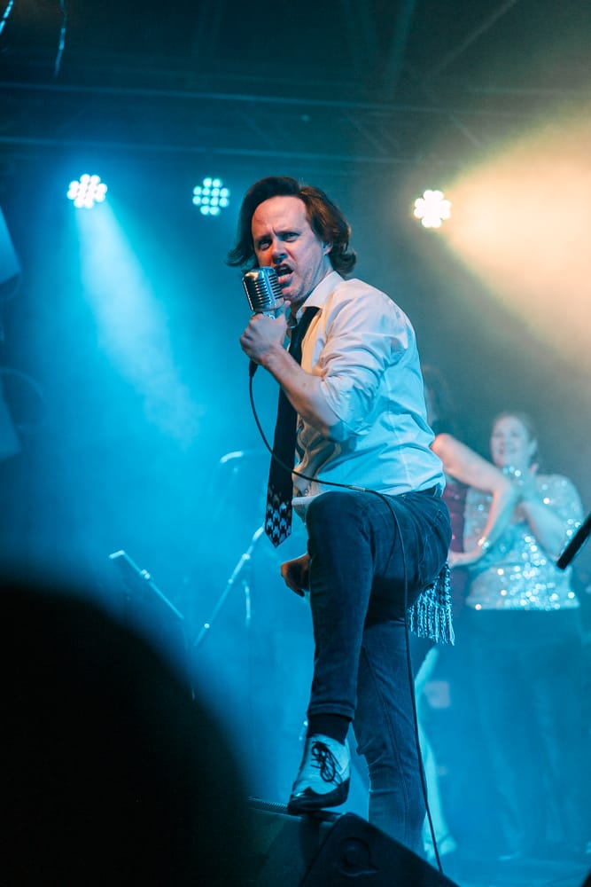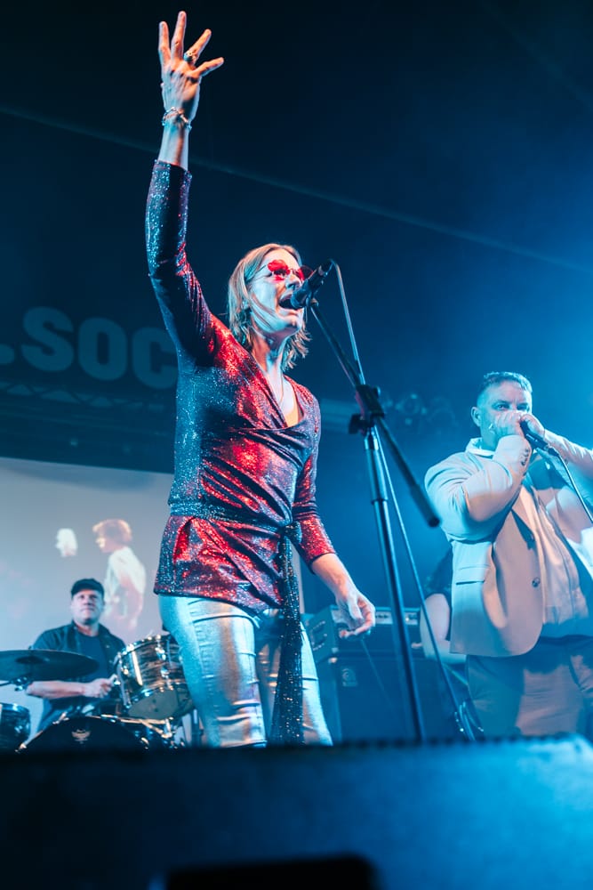 After Jake England embraced Bowie’s cut-up technique of lyrical composition to deconstruct Bowie’s own lyrics to compose and deliver a cut-up poem, Band Four took to the stage with Horn returning to kick off proceedings. In a night overflowing with musical highlights, one of the most poignant and impactful was undoubtedly her presentation of Lazarus. A song from Bowie’s twenty-sixth and final studio album, Blackstar, Lazarus is a self-penned eulogy reflecting on mortality, fame, and transcendence, with Horn’s inflicting delivery benevolently reinforced by her attire of a black dress and veil. Goerke and Gordon returned for Diamond Dogs and Boys Keep Swinging and were followed by Sami Electric Blue Bird, who presented a delightful rendition of Rebel Rebel.