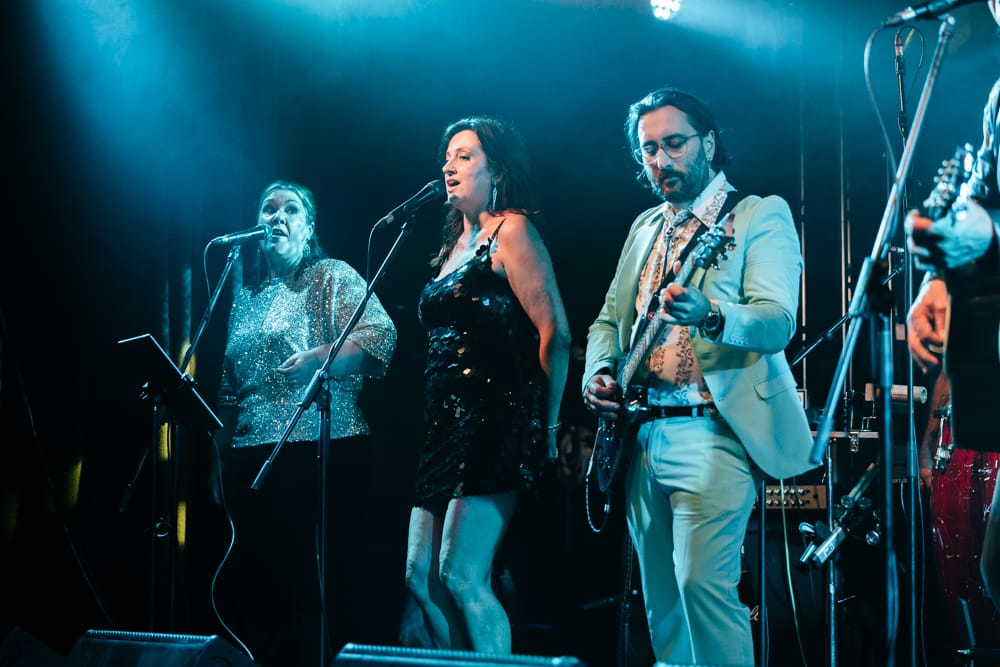 After impeccably conveying the song’s sombre essence, Horn turned the stage over to Rose Parker, who delivered an appropriately sultry rendition of Lady Grinning Soul. Greg Dear joined the collective armed with an acoustic guitar and sashayed his way through Sorrow before David Hyams delivered an impeccably sonorous version of Starman. Parker then rounded out the first set with a suitably ethereal version of the timeless Space Oddity (with Dear joining on acoustic guitar and delivering the all-essential countdown), followed by a powerful rendition of the splendidly surreal Life on Mars? from Bowie’s seminal 1971 album, Hunky Dory.