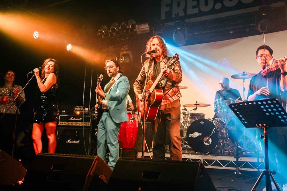 Set three saw the arrival of Band Three, with Clayton Bolger firstly fronting the ensemble. Also peeling off some authoritative electric guitar, he sublimely toured the audience through Changes and All The Young Dudes, with Selena Paul’s guitar work on the latter being another highlight. Greg Dear made a vocal cameo for Breaking Glass before Band Three’s drummer, Kieran Murphy, took over lead vocals on The Man Who Sold the World. Denise De Marchi then joined the fold to lead the vocalising on Modern Love and Ziggy Stardust. While De Marchi turned in a rapturous version of Modern Love, strapping on an acoustic guitar for Ziggy Stardust somewhat muted the bubbling verve previously summoned.