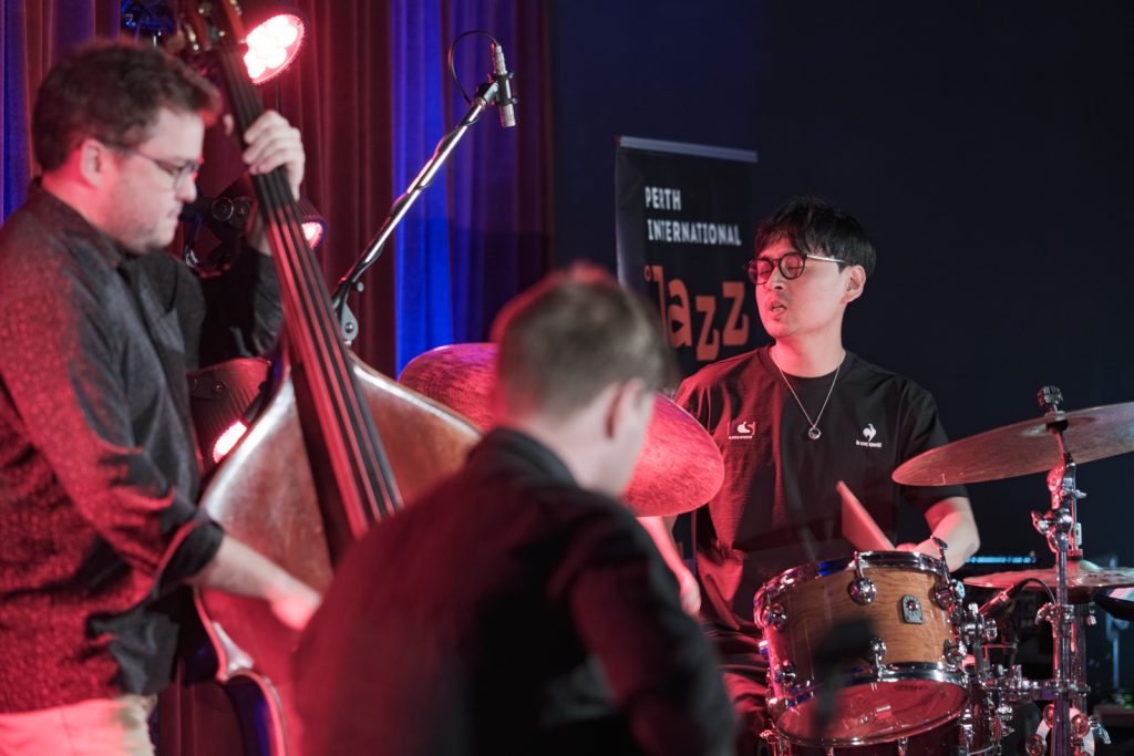 With the exception of the Bud Powell classic John’s Abbey, the ten songs in the two sets were all Ollendorff originals, mainly taken from his new album, Where In The World. The show was recorded by PIJF media sponsor ABC Jazz to be broadcast soon. Listen out for it. Although in his intro, PIJF artistic director, Mace Francis, encouraged the audience to applaud loudly for the recording, they didn’t need the prompting. Their delight at the talent and fine artistry on display was enough to provoke a spontaneous and enthusiastic response.