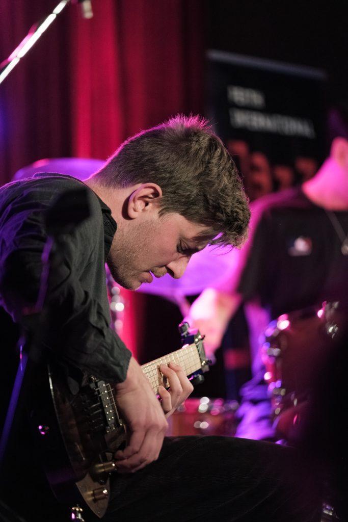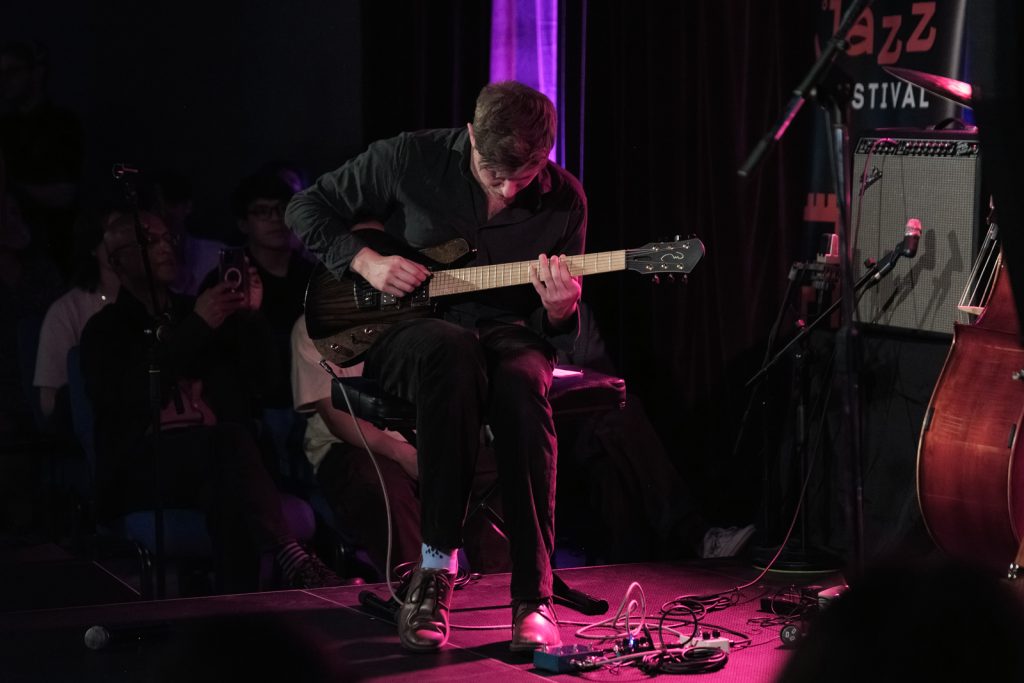 The PIJF audience were bowled over by Ollendorff’s exquisite playing. Backed by fellow Londoner Conor Chaplin (upright bass) and New York-based drummer JK Kim, his chops had to be seen to be believed. A fluid player, he would jump from a sublime sequence of chords to the smoothest six-string descent or an all-too funky bass riff. He can simultaneously finger-pick rhythm and lead, sometimes complicating the layers even further by looping them through his effects rack. The sprezzatura with which he incorporated one technique after another was wondrous; he was a true maestro.