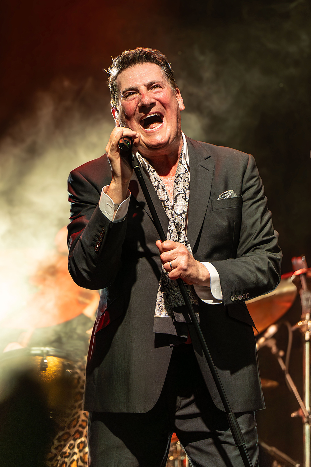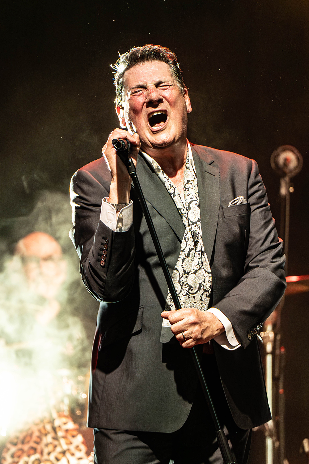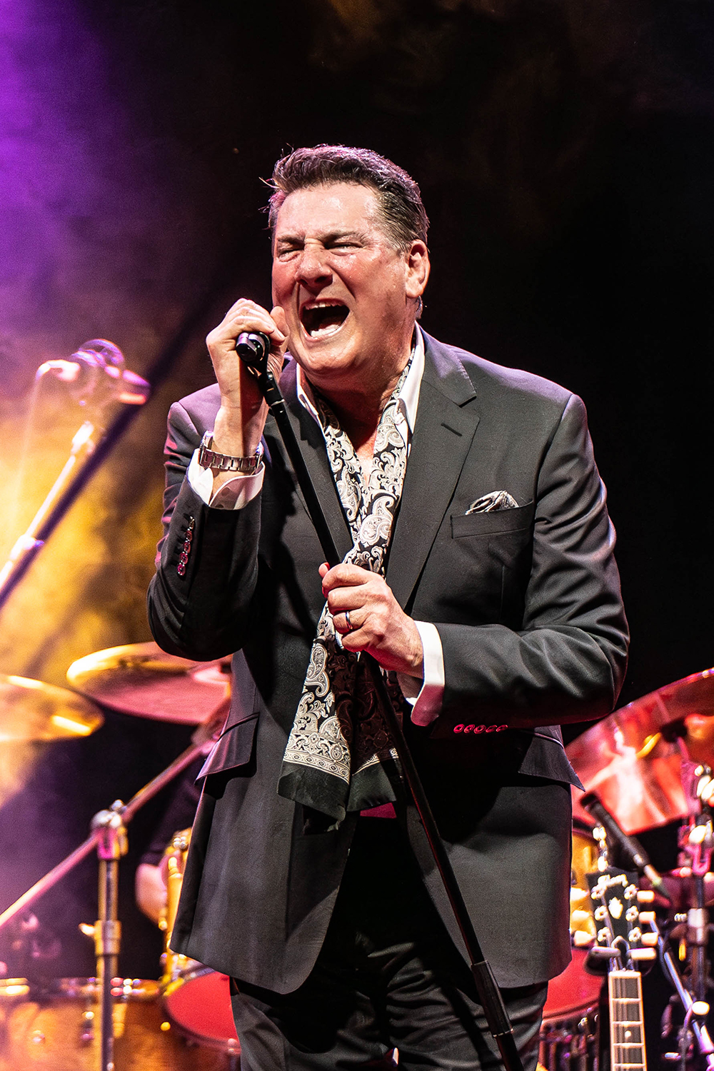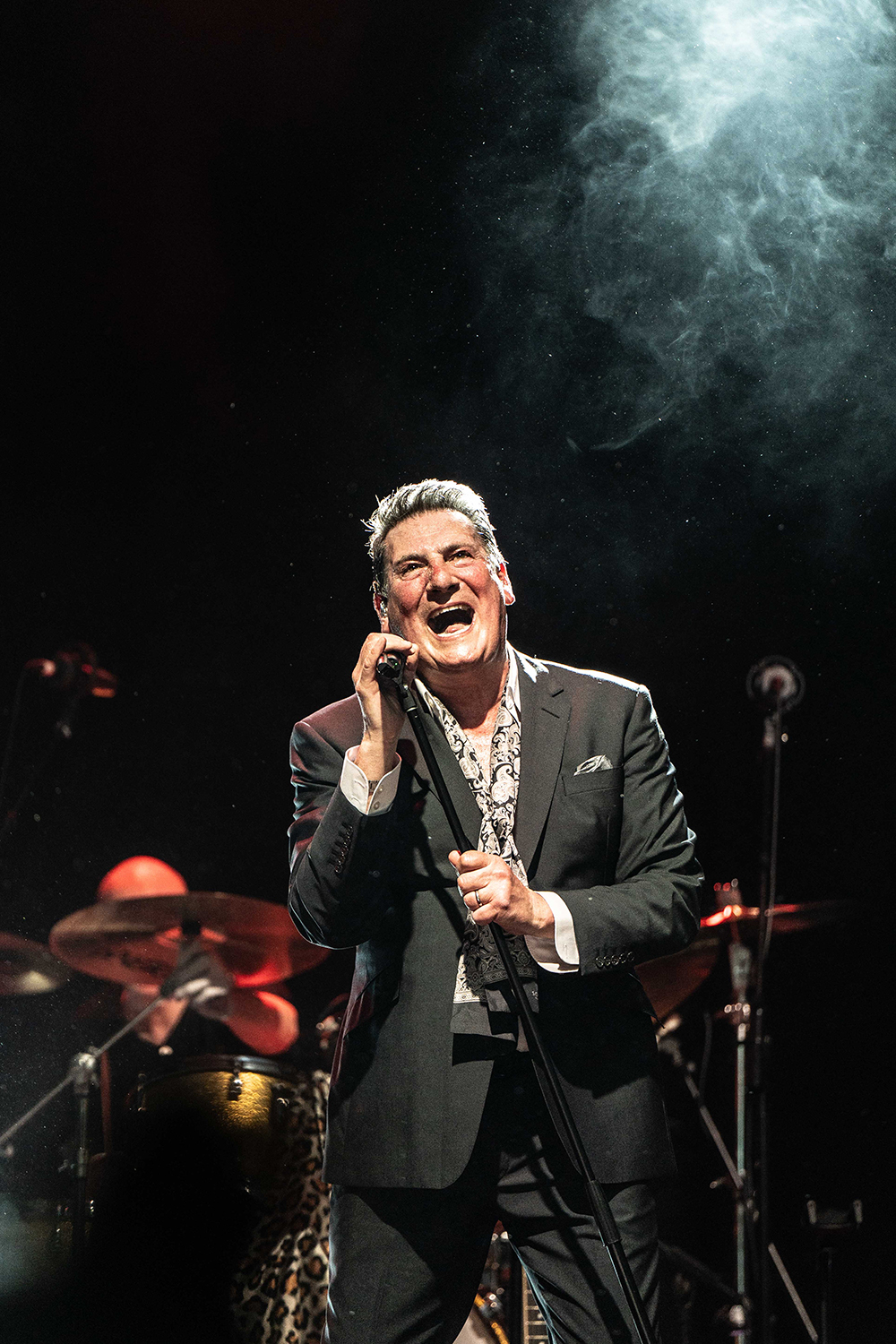 Sustained applause greeted Tony Hadley and band as they entered the stage. Even before one word was spoken or one lyric sung, multiple audience members leapt from their seats, the fans’ love and appreciation emphatic. Hadley began the evening seated with the oft-covered jazz standard, Feeling Good, before he launched to his feet with great verve and impeccable voice for the first of Spandau Ballet’s absolute classics, To Cut a Long Story Short.