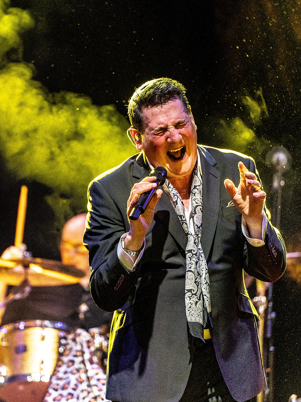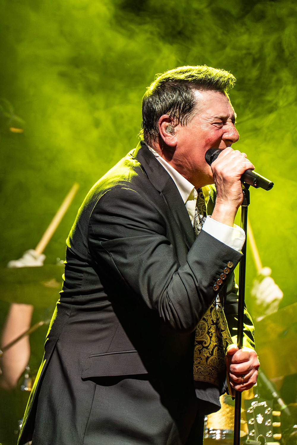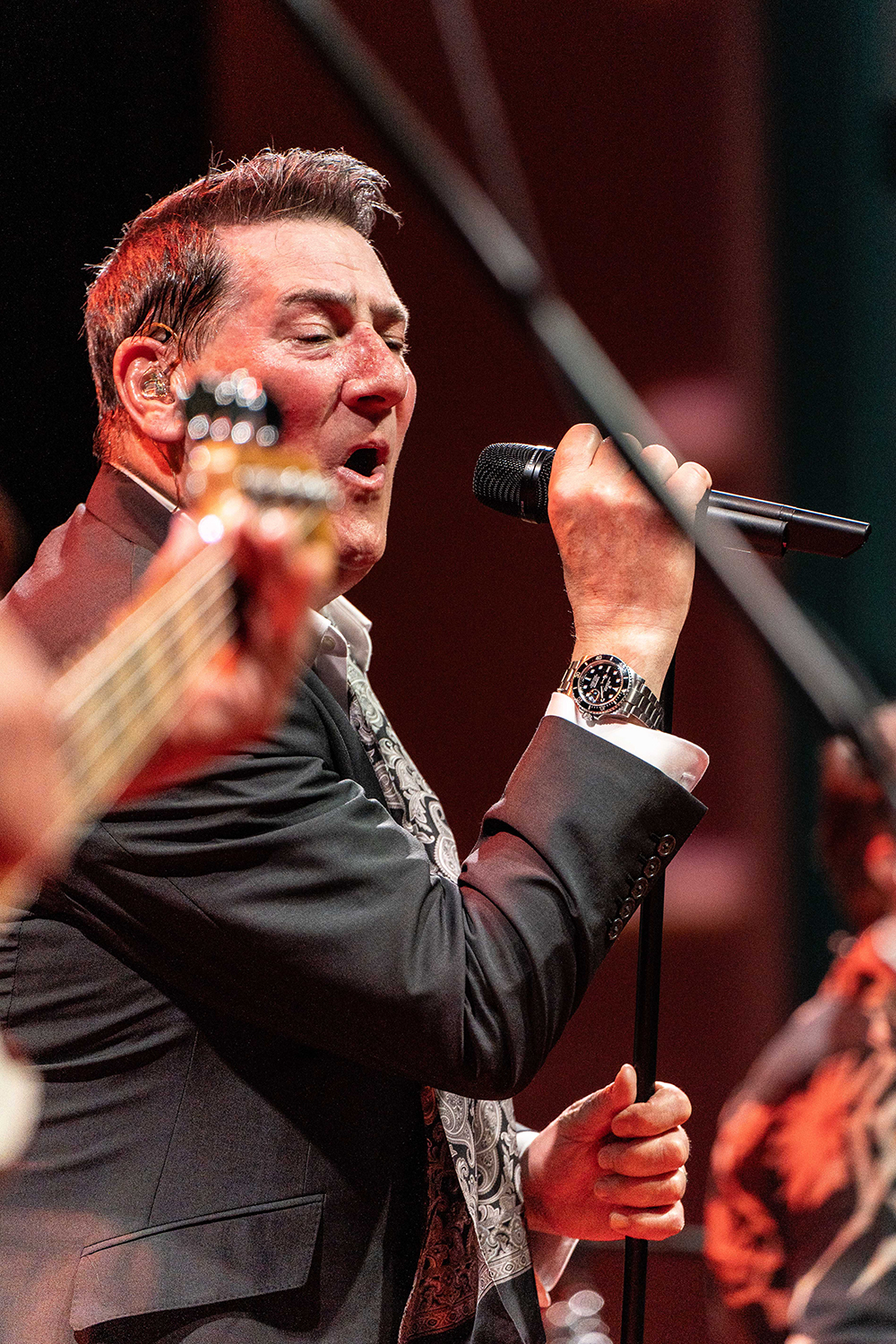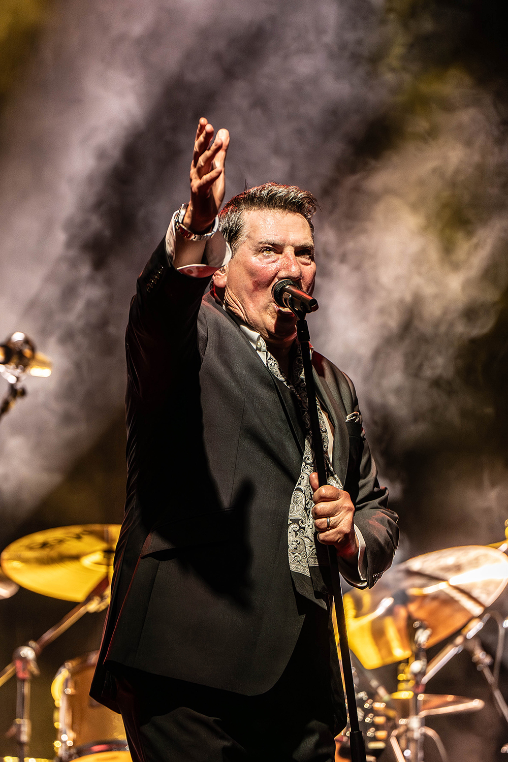 Sustained applause greeted Tony Hadley and band as they entered the stage. Even before one word was spoken or one lyric sung, multiple audience members leapt from their seats, the fans’ love and appreciation emphatic. Hadley began the evening seated with the oft-covered jazz standard, Feeling Good, before he launched to his feet with great verve and impeccable voice for the first of Spandau Ballet’s absolute classics, To Cut a Long Story Short.