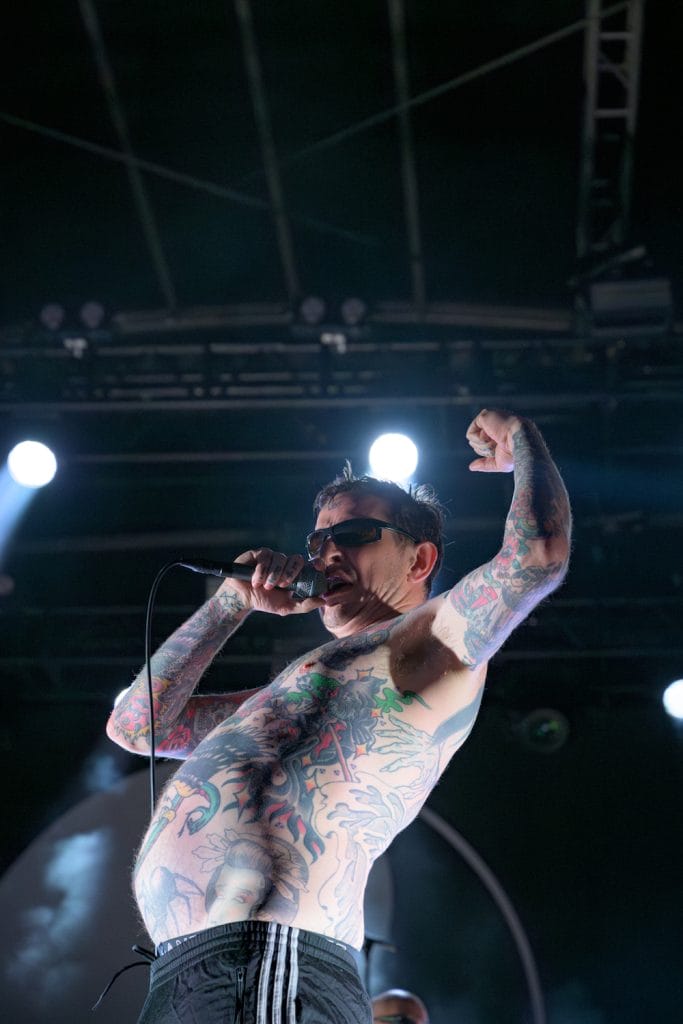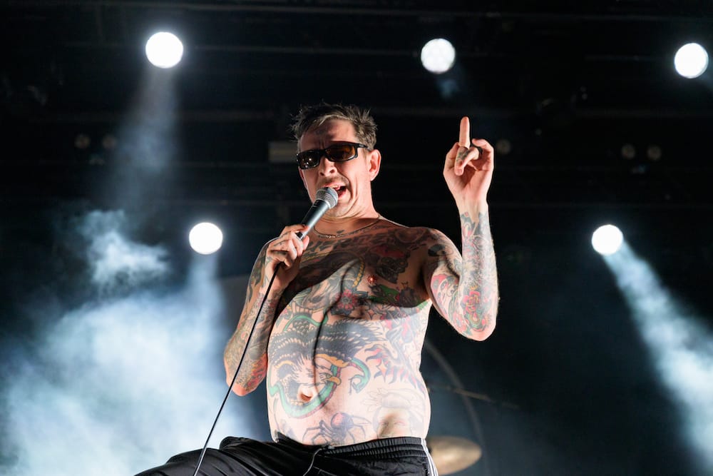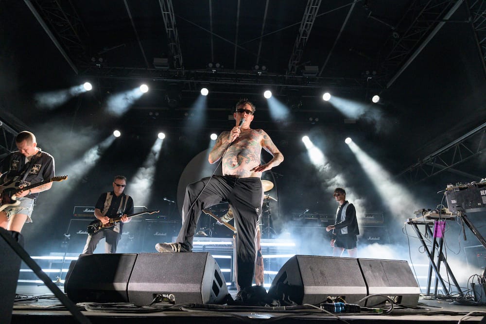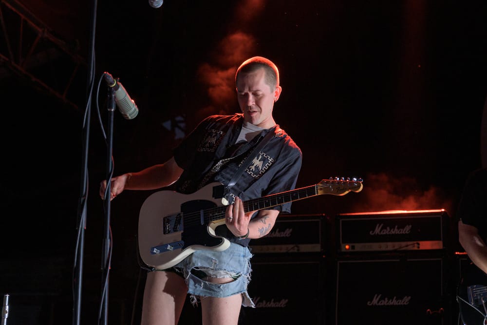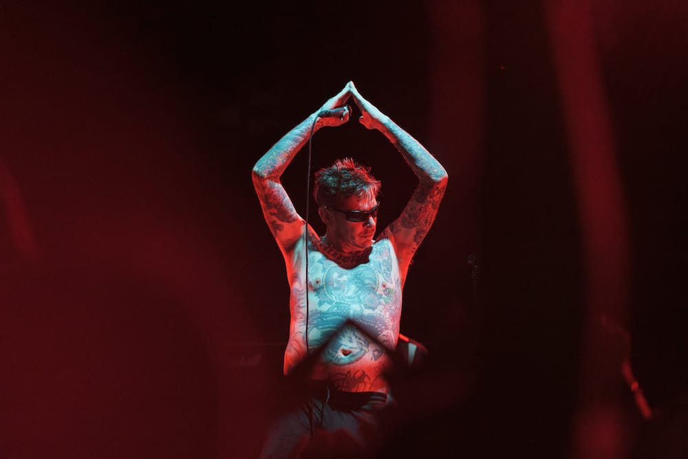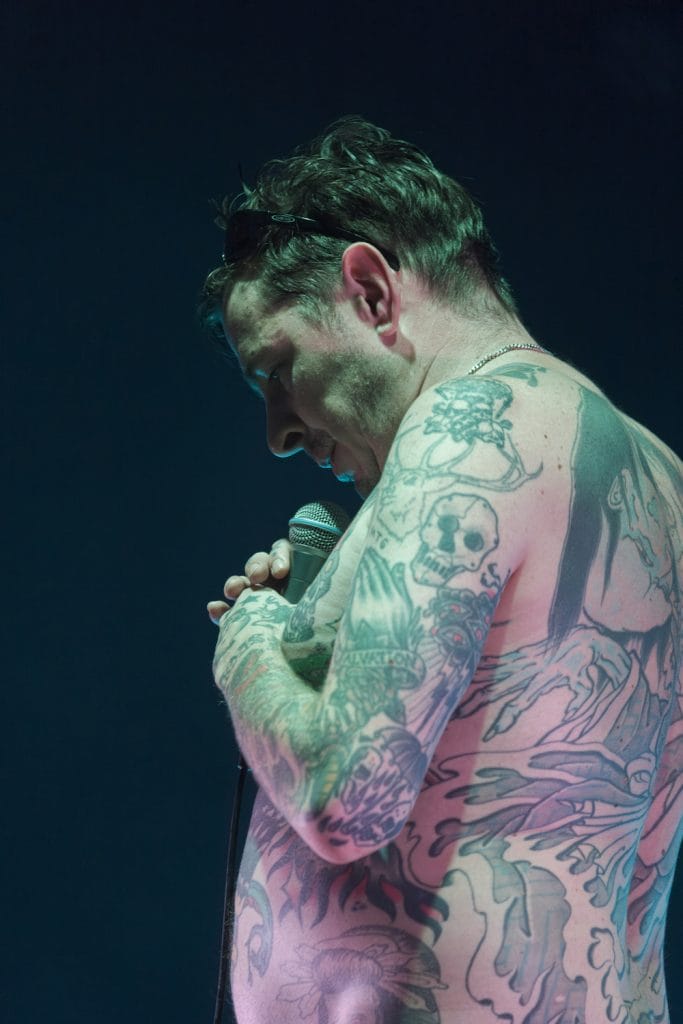 One particularly memorable move came during the outro of ADD, where, as he swivelled his hips and placed his hands on the back of his head, he projectile spouted a swig from his can of beer back up into the air above him, only for the liquid to come back down and wash over his tatted belly. Despite the objectively gross nature of the manoeuvre, there was somehow a sensual gracefulness to it and something that only the frontperson of a rock band should dare to entertain.