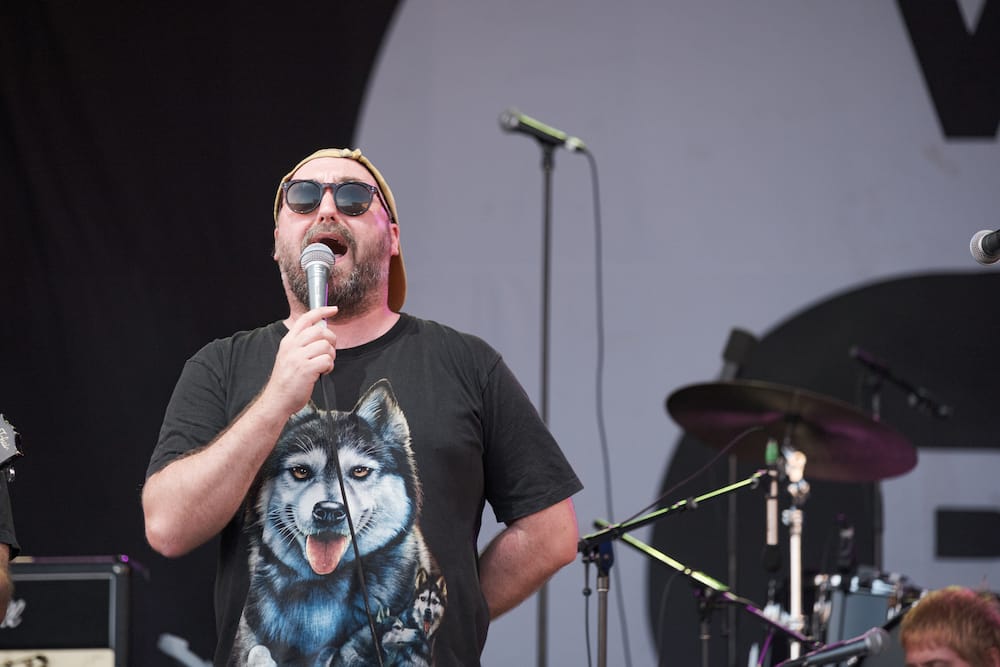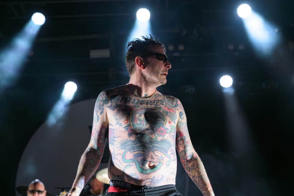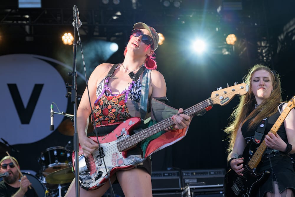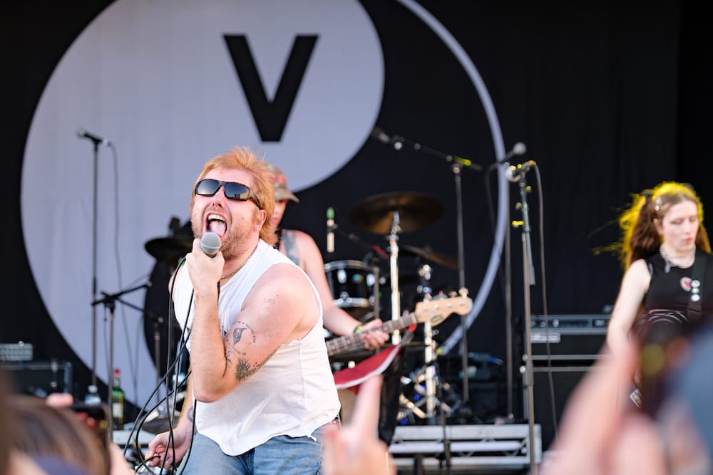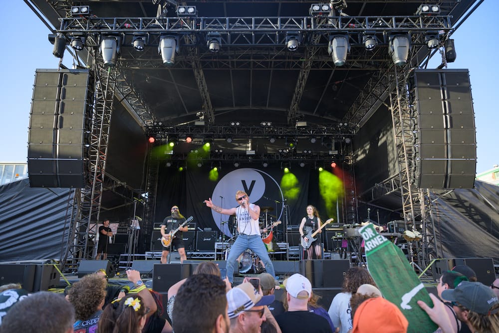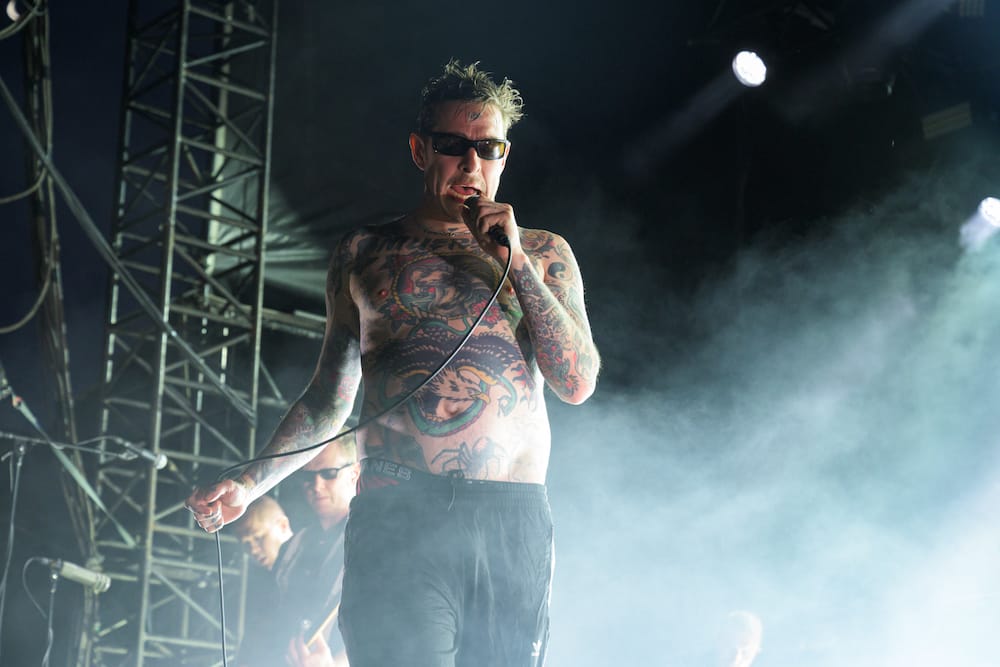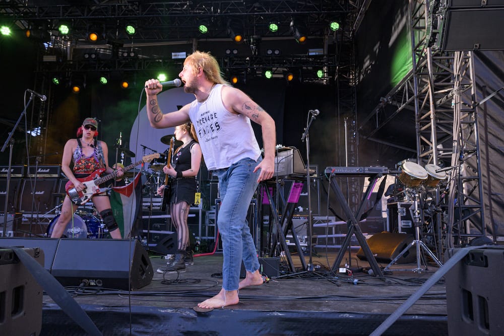 One particularly memorable move came during the outro of ADD, where, as he swivelled his hips and placed his hands on the back of his head, he projectile spouted a swig from his can of beer back up into the air above him, only for the liquid to come back down and wash over his tatted belly. Despite the objectively gross nature of the manoeuvre, there was somehow a sensual gracefulness to it and something that only the frontperson of a rock band should dare to entertain.