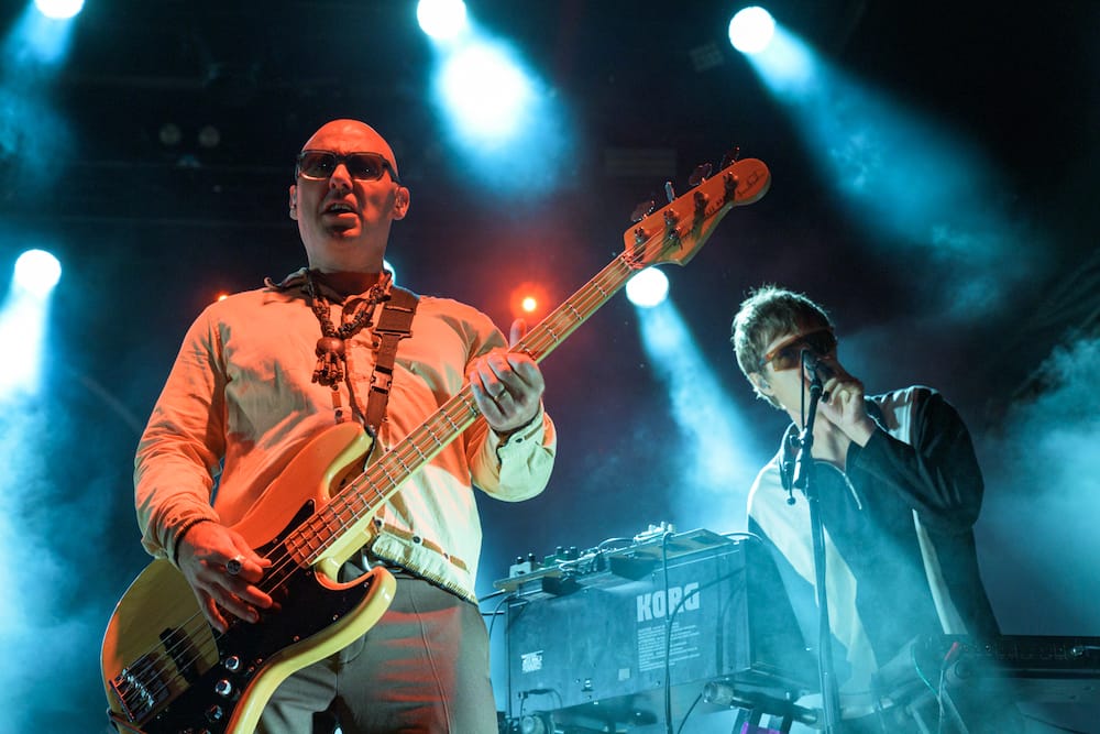 Proceeding with pace, Linus Hillborg’s slinky bass ushered in Uno II, which led into Ain’t No Thief. Serving as the end of the first part of their set, the mood physically shifted in the crowd during this number due to the sheer intensity of the performance. Ushered in by Murphy’s wandering, dreamlike story of his teenage self at a house party, the entire band went up a gear, locking into the track’s pummelling disco beat, while the guitars and Elias Jungqvist on synth concocted an unwieldy mix of swirling and stabbing psychedelic textures that entranced the audience.
