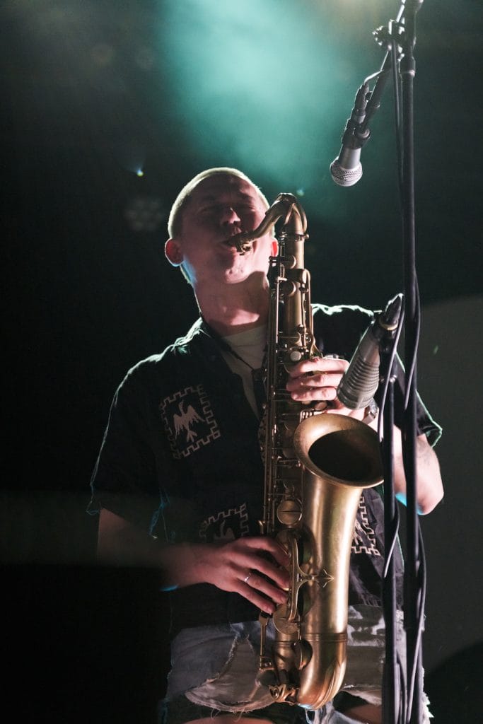 With the pace once again at full throttle, the most chaotic moment of the night was unleashed via an extended rave-up of Research Chemicals. With the rhythm section and guitars honing a krautrock-like passion for rhythmic rigidity, Carls pulled improv jazz-meets-post-punk shapes from his sax while Jungqvist abandoned his synths mid-song to pound a pair of bongos. And with the spirit of the drums slowly taking him over, Jungqvist moved ever closer to the front of the stage before finally launching himself into the crowd, bongos and all, in a moment of rock ‘n’ roll exaltation. With the jam seemingly self-perpetuating and gaining momentum, it finally found its release as Jungqvist made his way back to the stage, and the group left the stage.