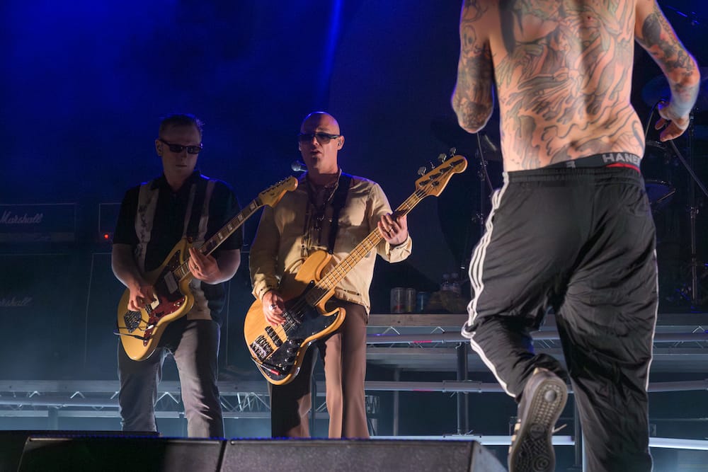 It was not just the headliners that were up to no good, however. Opening act Private Function swaggered in as if they owned the joint and set the tone early with a burst of rowdy, good-humoured chaos. Frontman Chris Penney exemplified the Melbourne six-piece’s larrikin nature, smoking cigs and downing beers all the while never missing a breath to deliver his lyrics into the mic.
