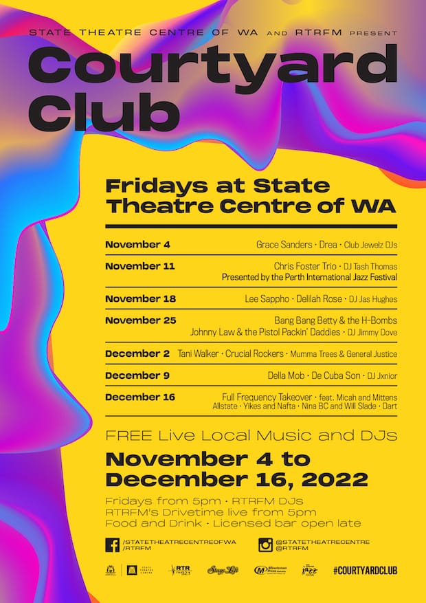 RTRFM’s The Courtyard Club hits the State Theatre Centre Courtyard from Friday, November 4 to Friday, December 16, 2022. For more info, head to rtrfm.com.au