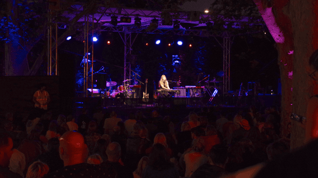 That made her performance at the Front Garden of Fremantle Arts Centre all the more intimate on Monday night. For a start, the bar queues were virtually non-existent as punters acknowledged the school night and claimed a piece of turf with blankets and low back chairs. Those standing during support act Banjo Lucia‘s set were told to sit by security, and the picturesque environment was one of zen and subtly changing colours as the sun went down.