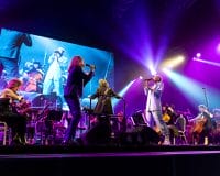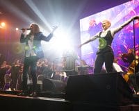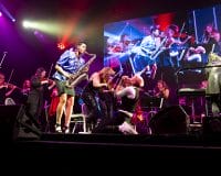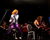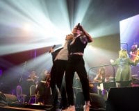 The audience returned from the intermission for the inevitable Ziggy tribute, with Hensby donning a glorious wig and whipping out the guitar for Ziggy Stardust. Axe had changed into a very cool Union Jack outfit, appropriate for her take on 90s Bowie standout I’m Afraid of Americans. This was a sleeper highlight, Axe’s voice and attitude suiting the song’s slinky rhythm perfectly. Starman and Space Oddity both went off well, and Lazarus showcased late period Bowie in a track that again played to Axe’s strengths, even if the orchestral backing may have been a tad too loud. Closing the main show was Changes and finally Rebel Rebel. It was cool to see Rebel Rebel’s legendary guitar riff played by the string section. The track got the crowd going and the boogie continued with an excellent transition to another glam rock classic in The Jean Genie.