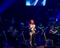 The torch was then passed to Addison Axe. Axe fronts local rockers The Tommyhawks and Axe Girl, and her voice is breathier and jazzier, able to belt out the stronger numbers but also handle some of her selections’ quieter moments with the tenderness they required. Her opening track was a beautiful rendition of Life on Mars, a nuanced performance that made full use of the orchestra’s string section. Magic Dance followed, a nod to the beloved film Labyrinth. It featured some audience call-and-response befitting of a song so infectiously silly, and was a fun standout. Ashes to Ashes and then Heroes closed out the opening part of the set, with Hensby returning for the latter to delivery another gusty performance.