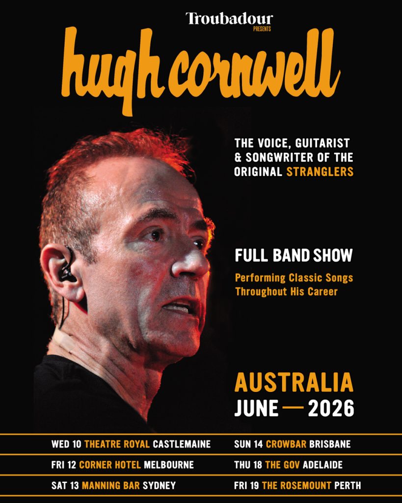 Hugh Cornwell, the original singer, guitarist and principal songwriter of English punk rock band The Stranglers will embark on an Australian tour with his band this June.