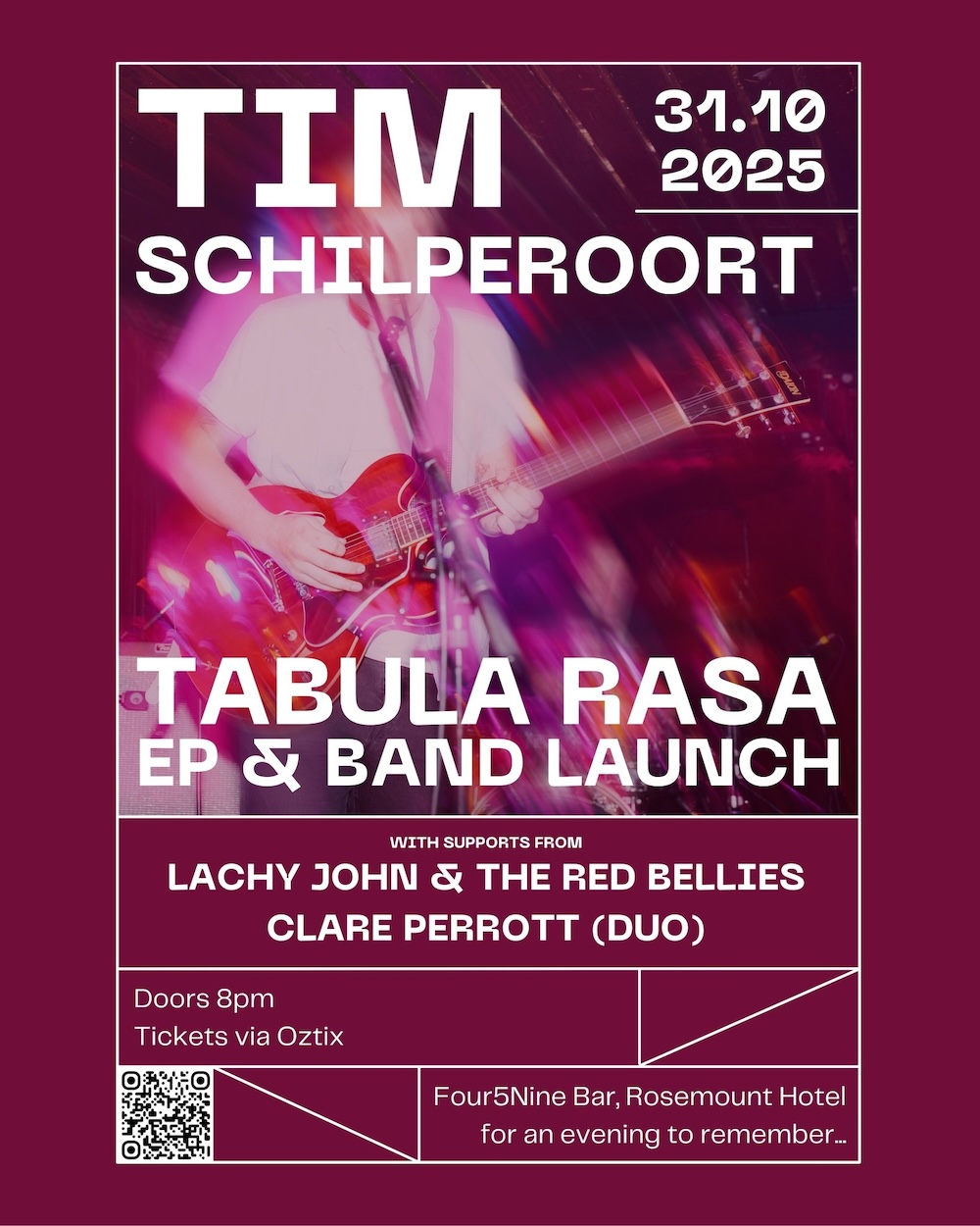 Tim Schilperoort launches his debut solo EP, Tabula Rasa, at the Rosemount Hotel’s Four5Nine Bar on Friday, October 31, 2025. Tickets are on sale now from rosemounthotel.oztix.com