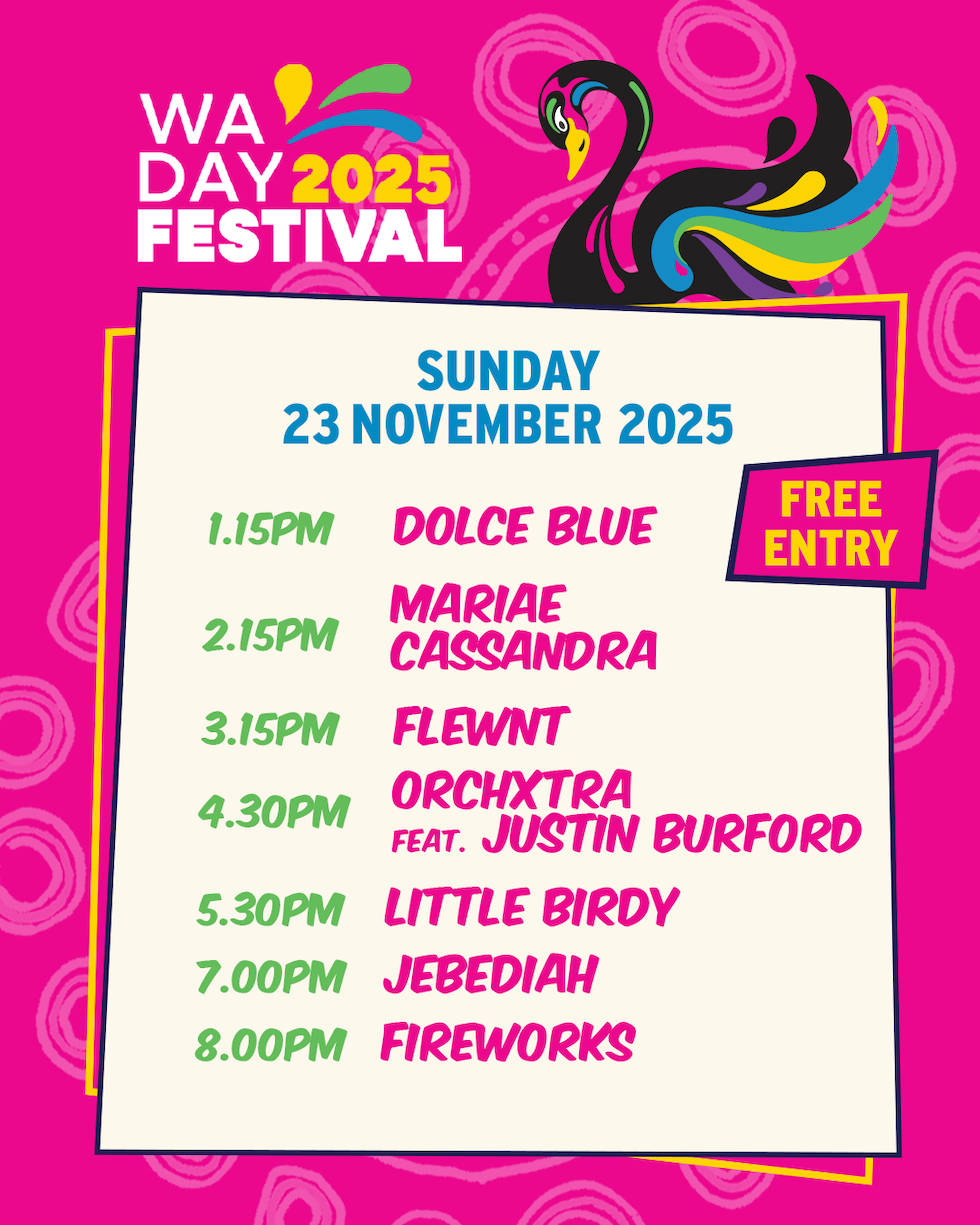 The WA Day Festival hits Burswood Park from Saturday, November 22, to Sunday, November 23, 2025. For more info and the full program visit waday.com